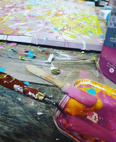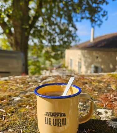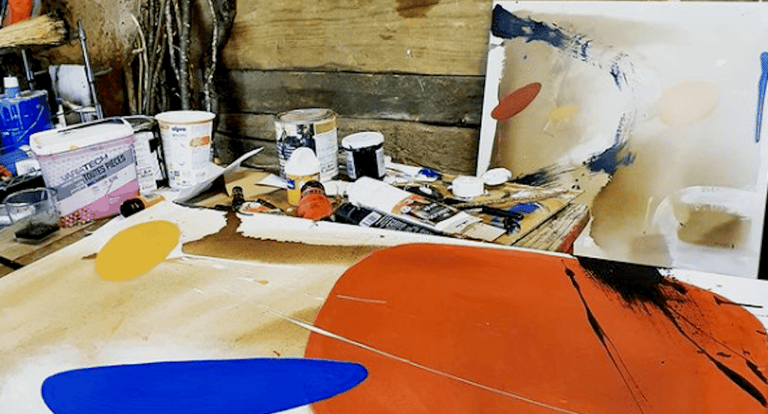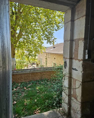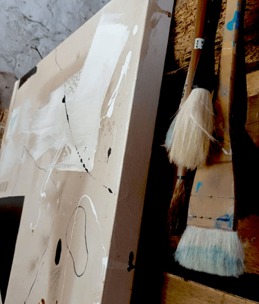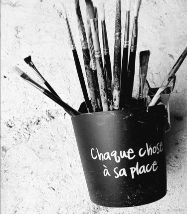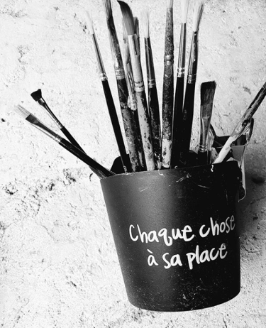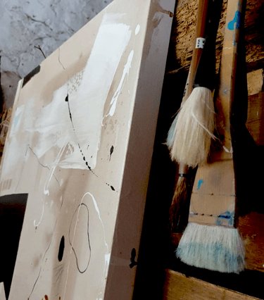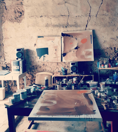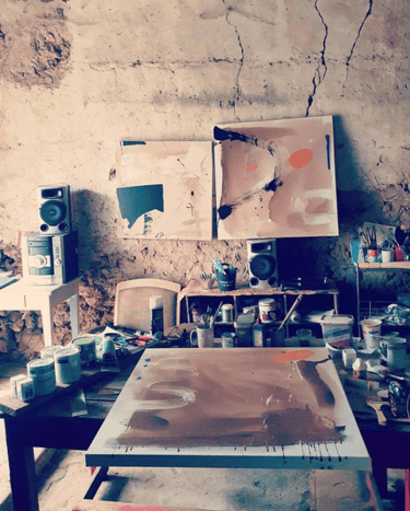 C' est dans une ancienne grange en pierre, dans le Périgord, entre Périgueux et Bergerac que l'artiste crée ses œuvres.
